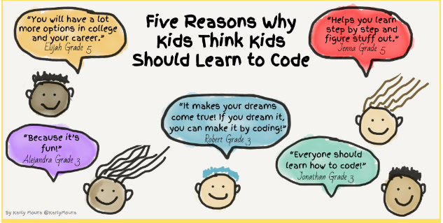 If you’re still unsure about the benefits of teaching coding, perhaps the kids themselves can convince you. Students at Karly’s school, Sun Terrace Elementary, program all year long and they know how important it is to learn programming. We asked them to tell us why it’s crucial to know and they gave us terrific reasons why kids think kids should learn to code!